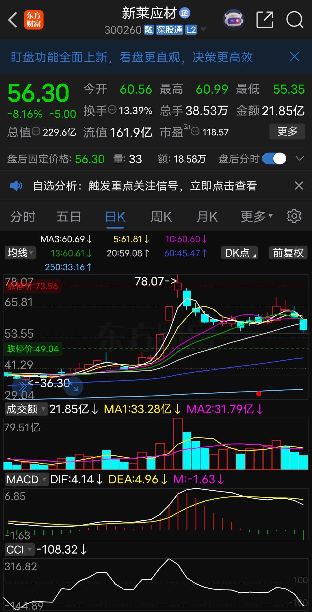 同惠跟新莱吧?那么新莱这形态实在是破位了,不能接空中飞刀,明天开盘有冲高时候及时