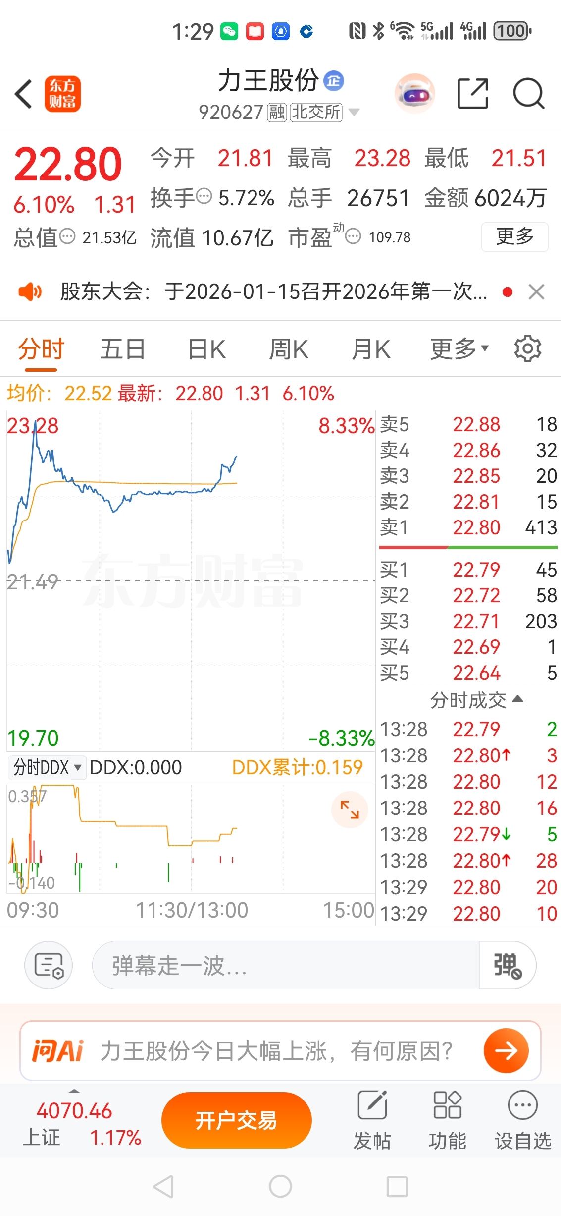 你北交所锂电老弟力王股份大涨