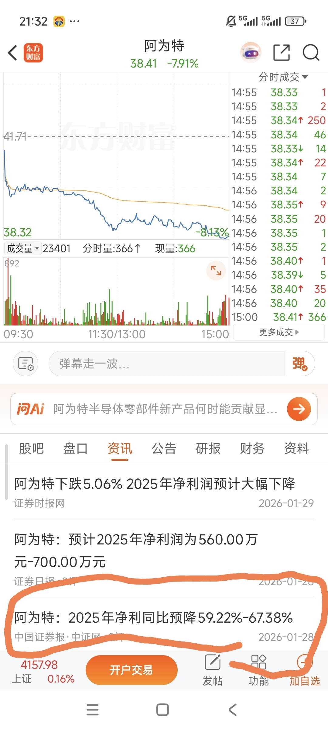 $纳科诺尔(SZ920522)$ 昨晚阿为特公布业绩,今天跌8个点,明天纳科诺尔估计也差不多