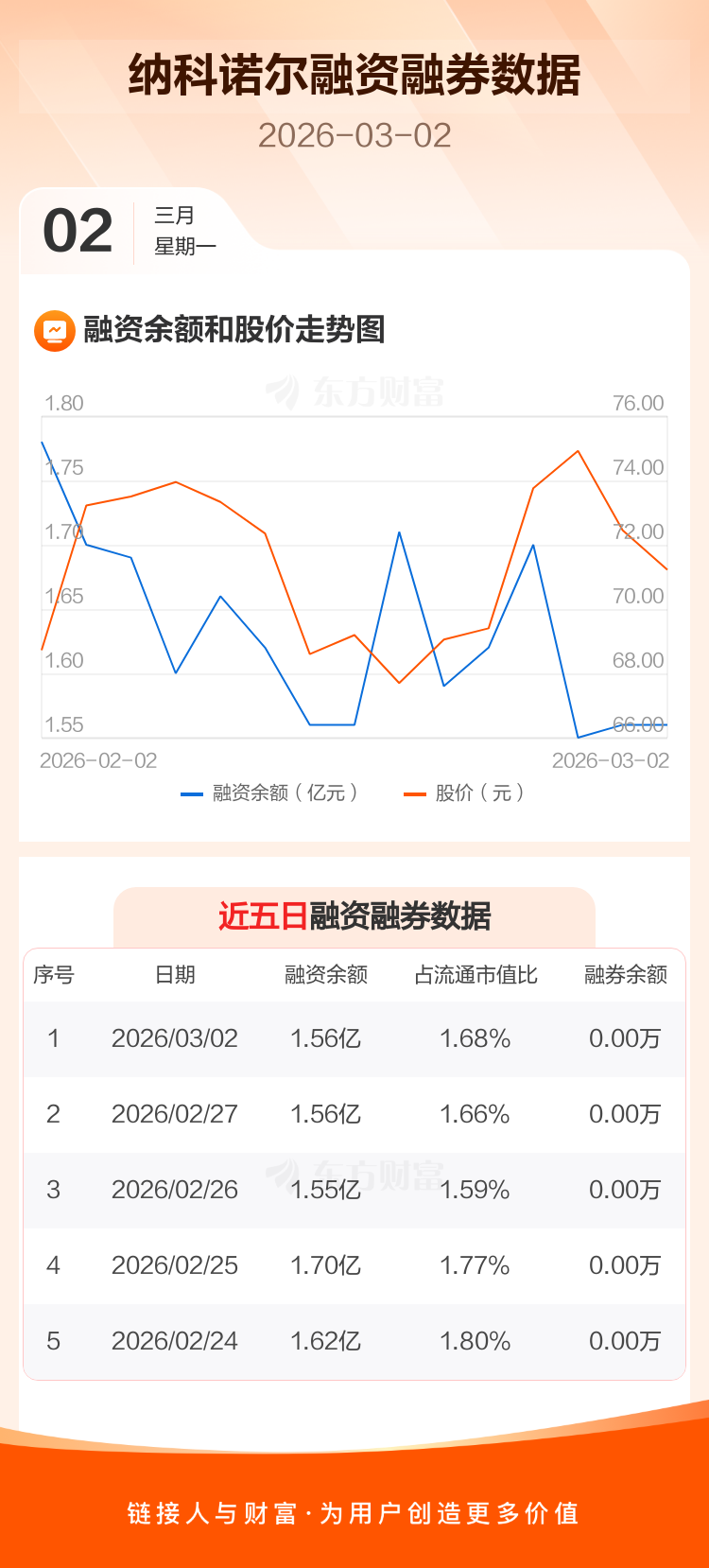 交易所最新数据显示,纳科诺尔于2026年3月2日获融资买入1042.64万元,融资偿还1094.59万元,当日融资净偿还51.94万元。目前,该股融资余额1.56亿,占流通市值比例为1.68%。