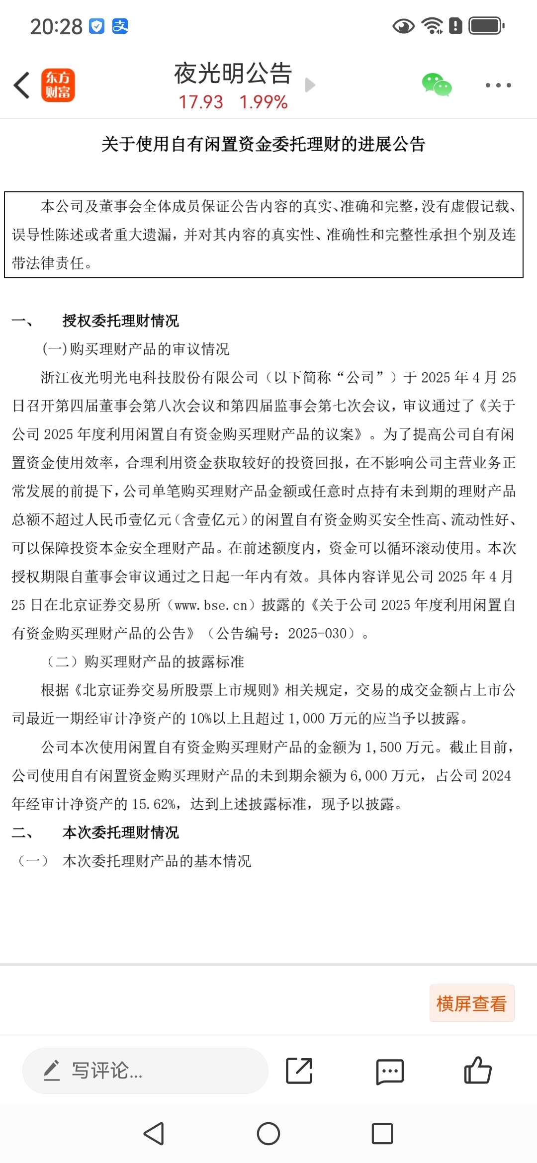 $夜光明(SZ920527)$ 一个亿去理财也不去回购股票,都跌成什么价了,才十个亿市值