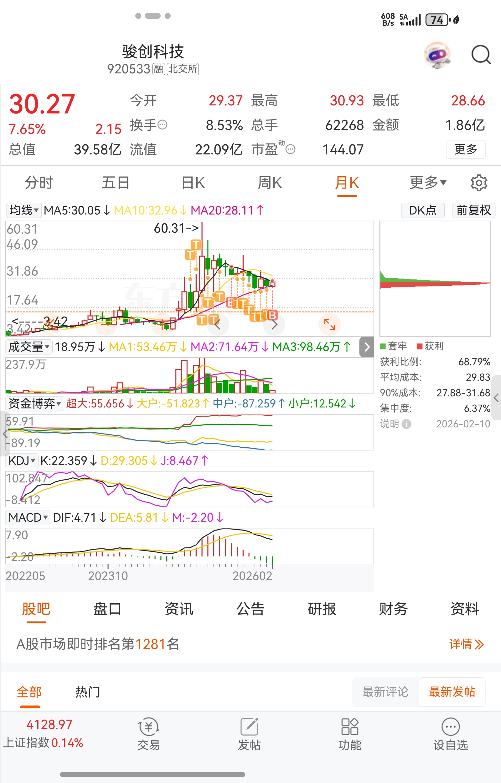 $骏创科技(SZ920533)$ 月线三角末端,该选择方向了!