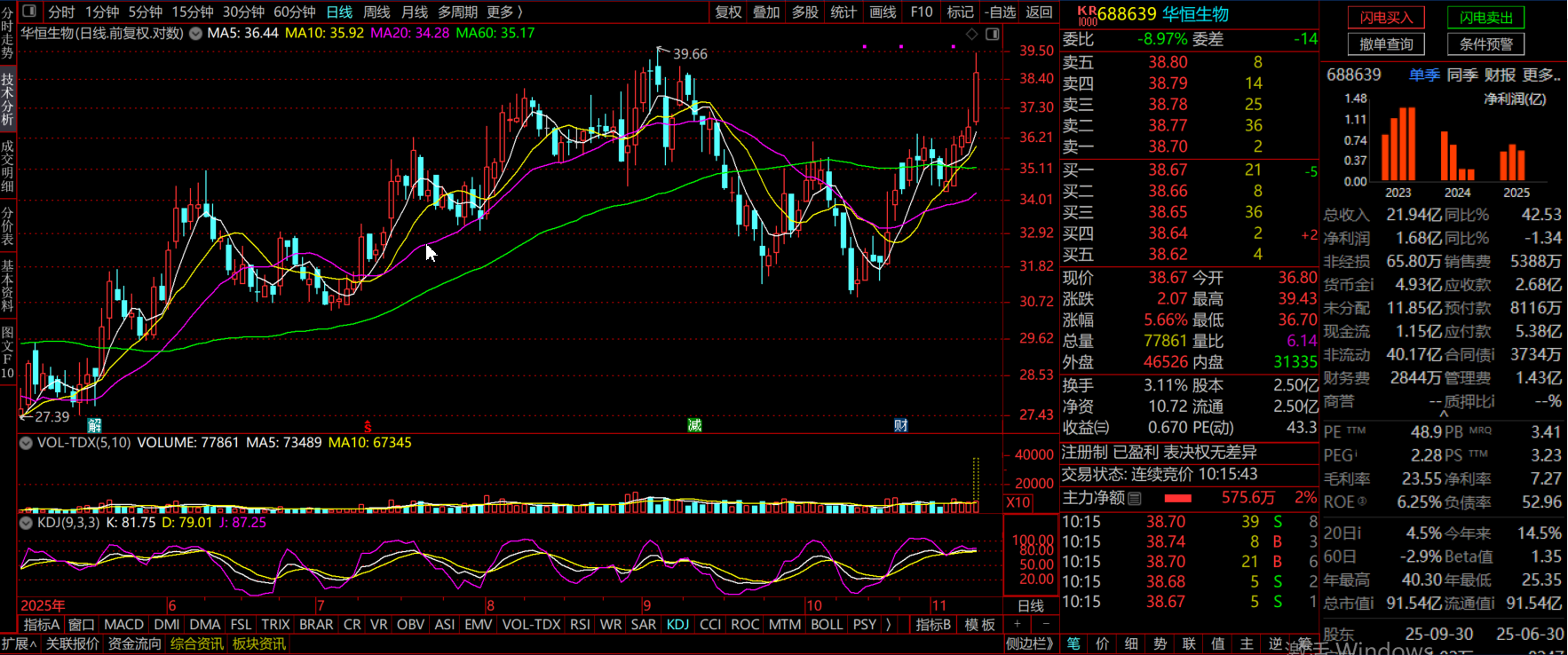 华恒生物今天又涨,股价、市盈率高高凌驾在无锡晶海头上。