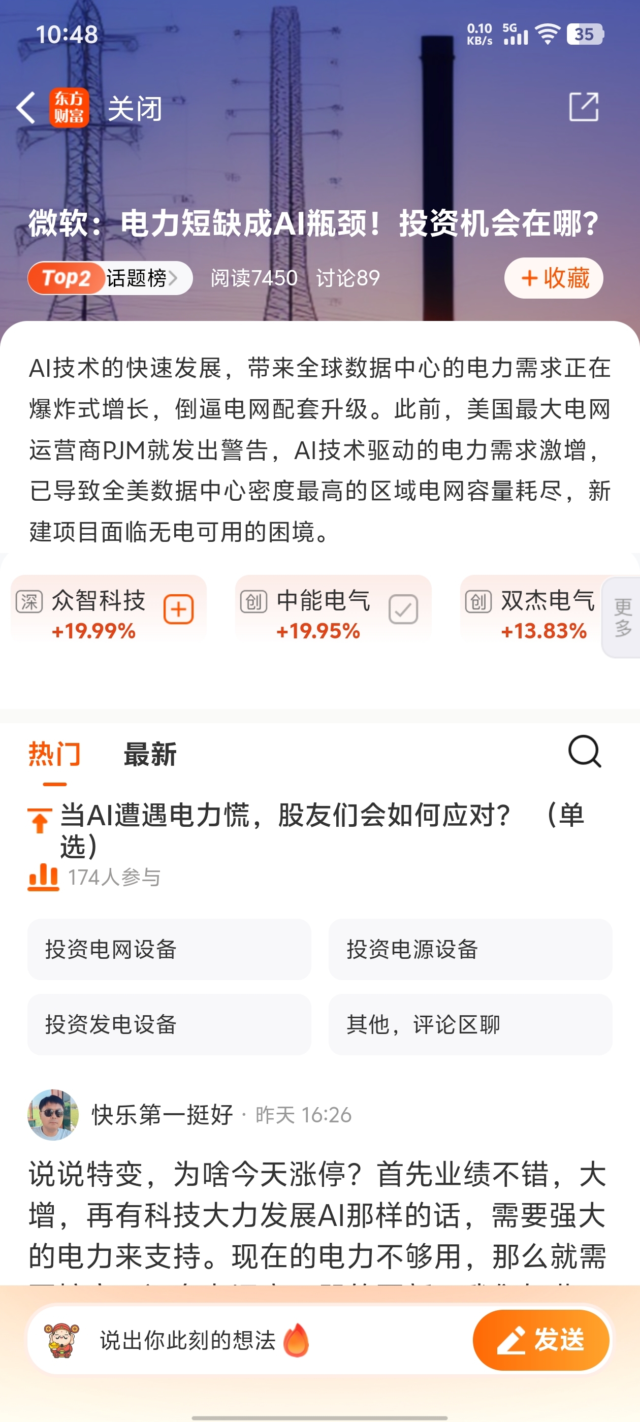 温馨提示: 1.根据《证券法》规定,禁止编造、传播虚假信息或者误导性信息,扰乱证券市场;2.用户在本社区发表的所有资料、言论等仅代表个人观点,与本网站立场无关,不对您构成任何投资建议。用户应基于自己的独立判断,自行决定证券投资并承担相应风险。《东方财富社区管理规定》