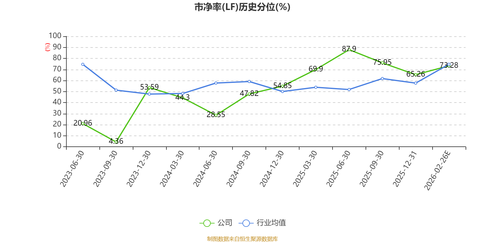 市盈率、市净率为负时,不显示当期分位数,会导致折线图中断。