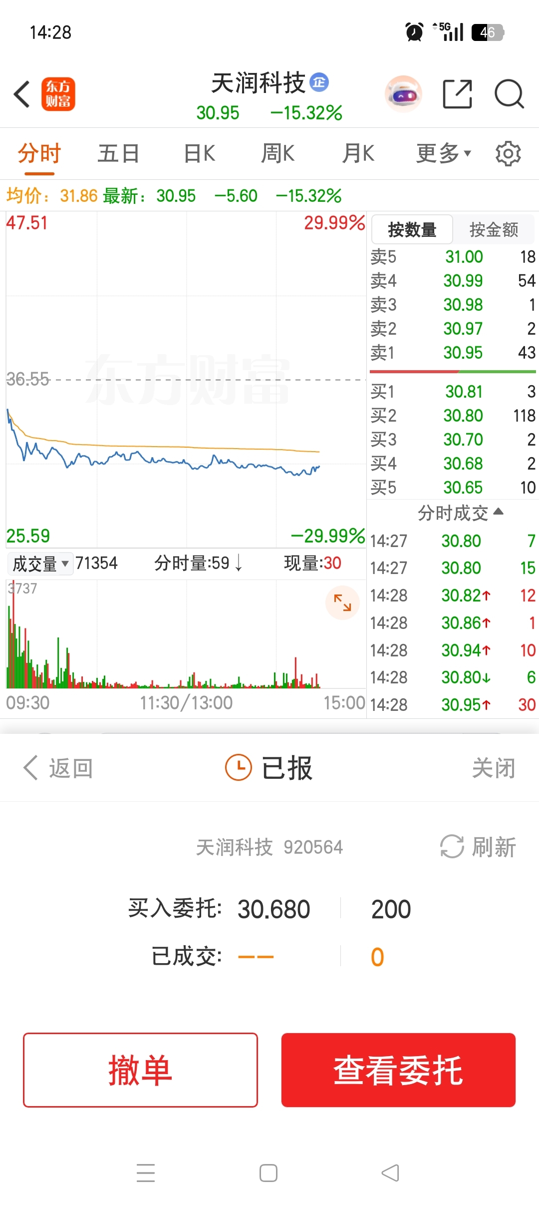 $天润科技(SZ920564)$ 那两手30.68是我的,能买进吗?