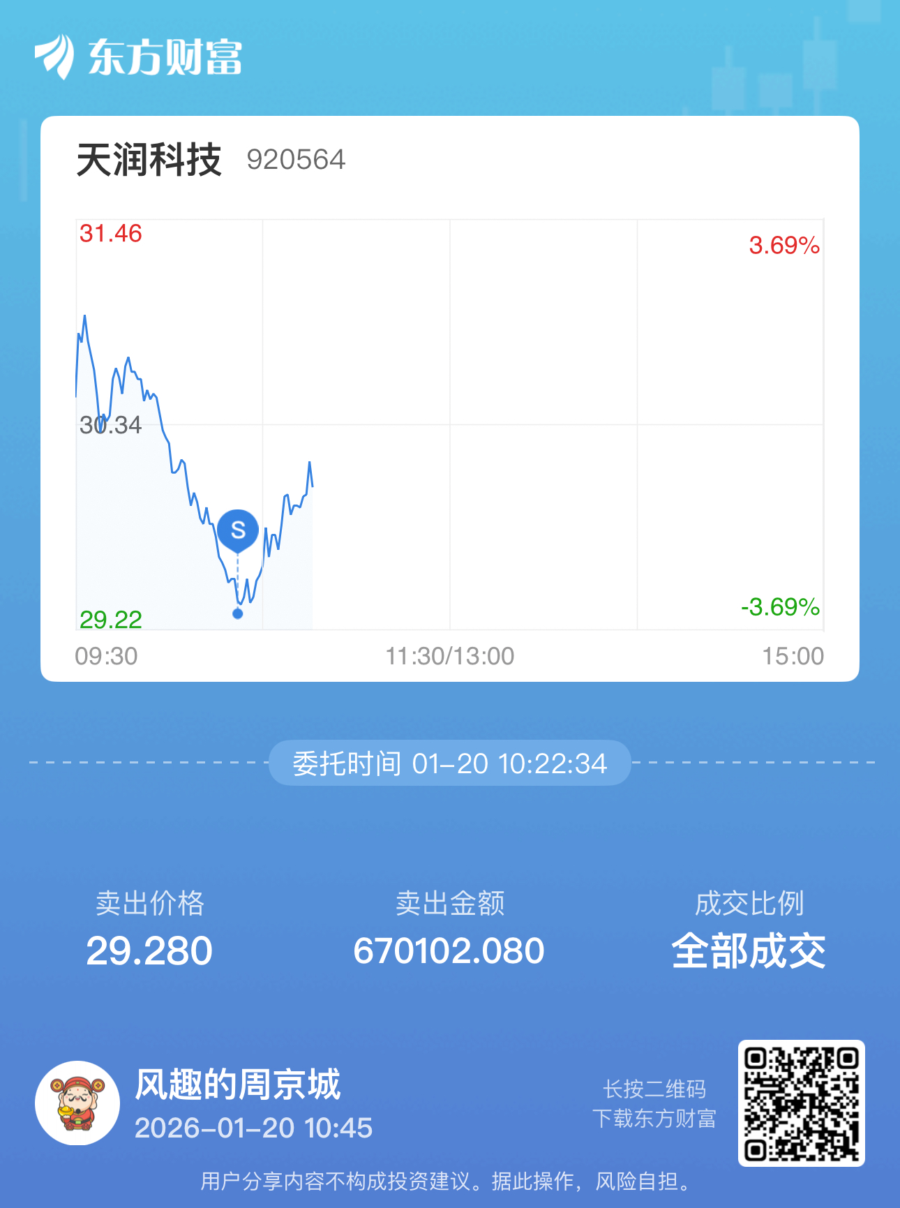 温馨提示: 1.根据《证券法》规定,禁止编造、传播虚假信息或者误导性信息,扰乱证券市场;2.用户在本社区发表的所有资料、言论等仅代表个人观点,与本网站立场无关,不对您构成任何投资建议。用户应基于自己的独立判断,自行决定证券投资并承担相应风险。《东方财富社区管理规定》