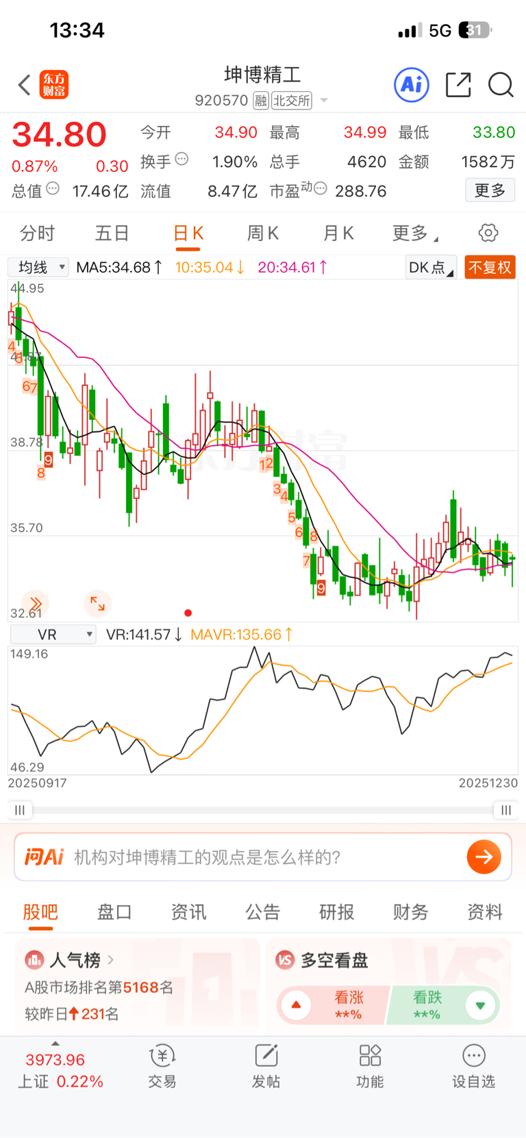 $坤博精工(SZ920570)$ 只有坤博精工还在谷低,另外两个北交所机器人概念股都20,30 cm了