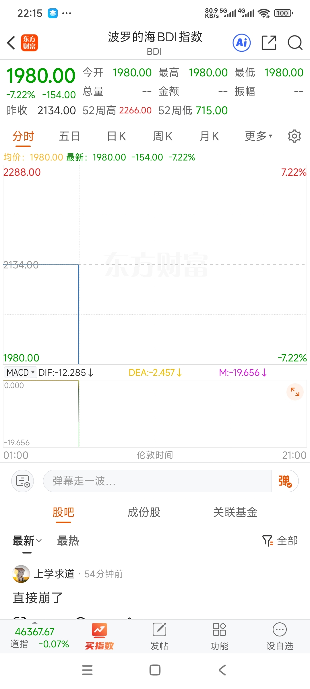 bdi两天已经跌了11个点,放假回来前如果还是没有起色,礼拜四就不是负二三个点可