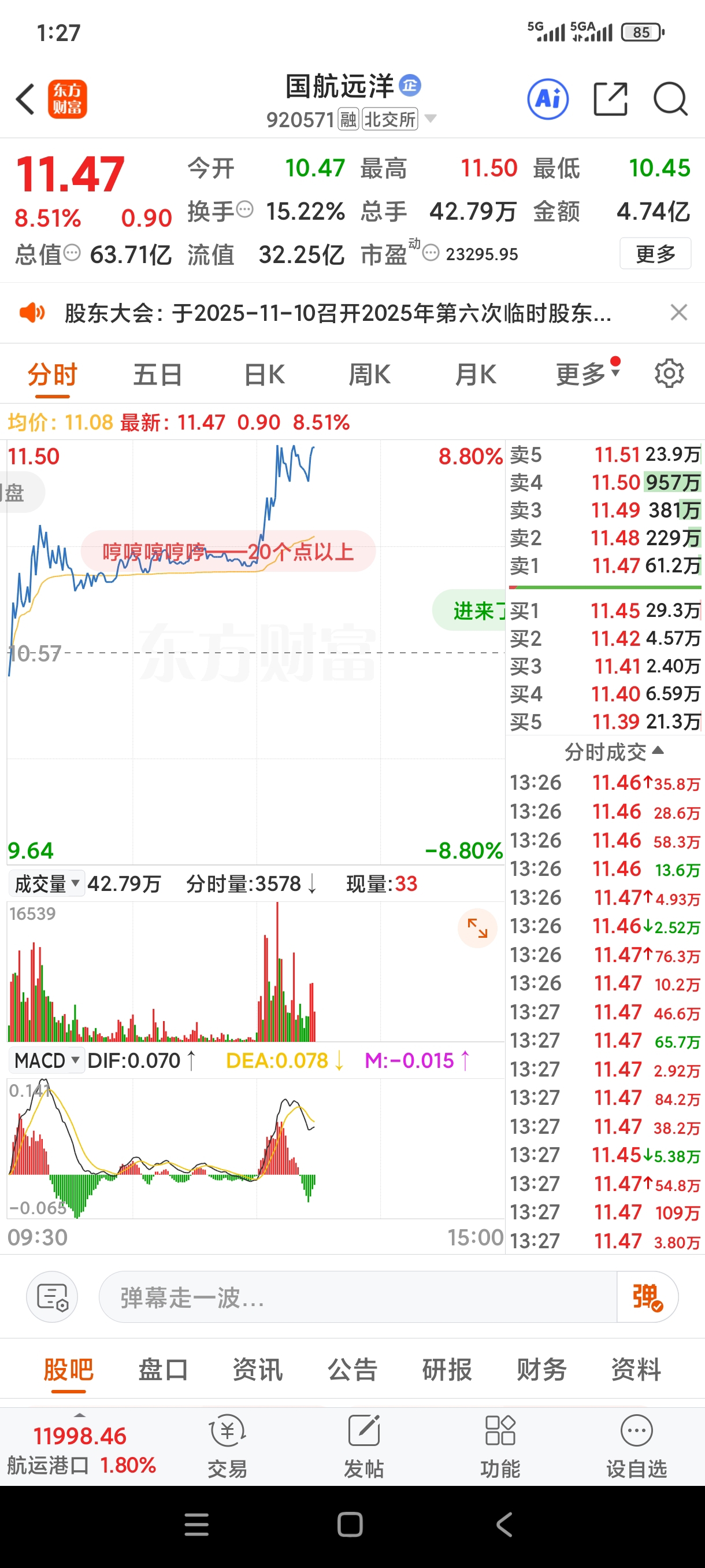 $国航远洋(SZ920571)$ 这些卖单是怎么回事