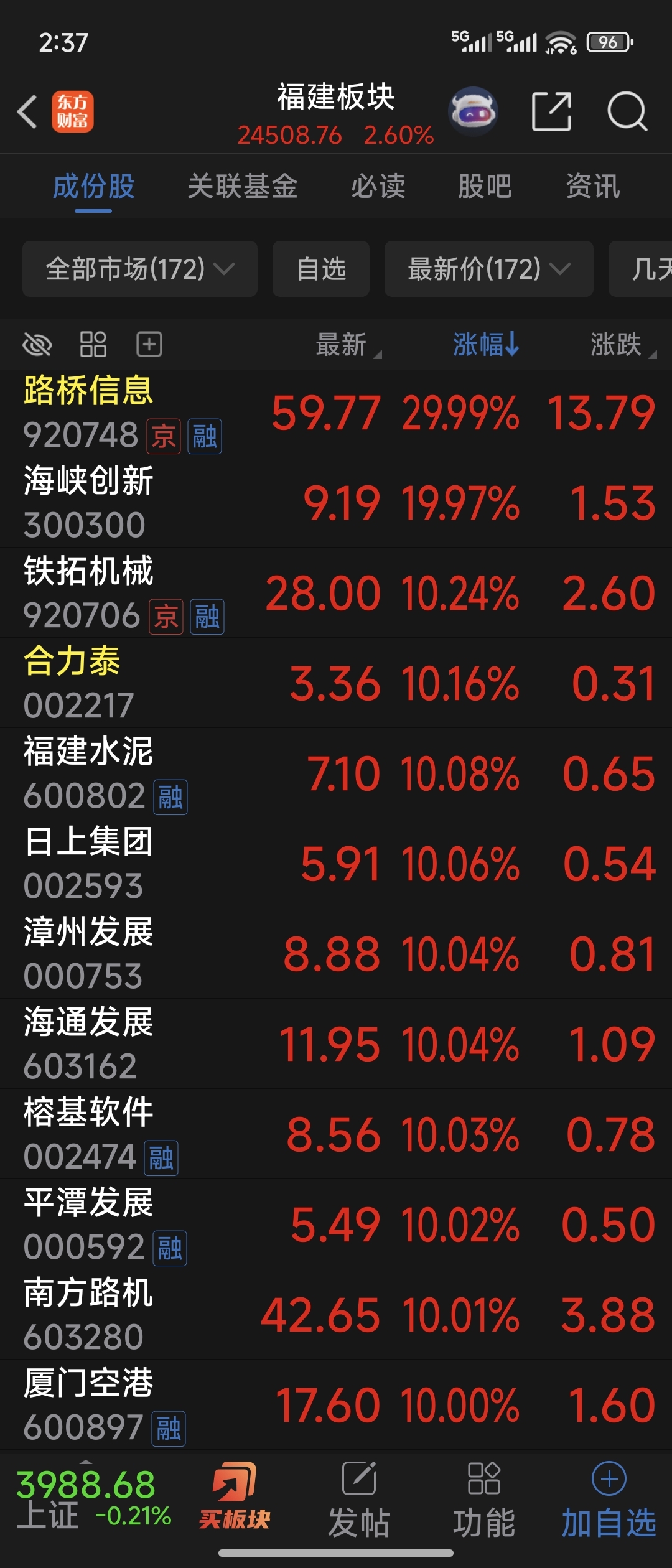 福建板块普遍涨停板,路桥信息严重亏损还被立案调查股票30%涨停板,囯航远洋变做死