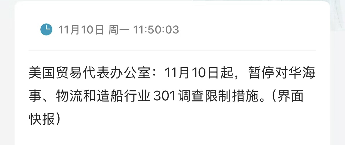 算不算利好美国暂停对华海事、物流、造船行业301调查限制措施