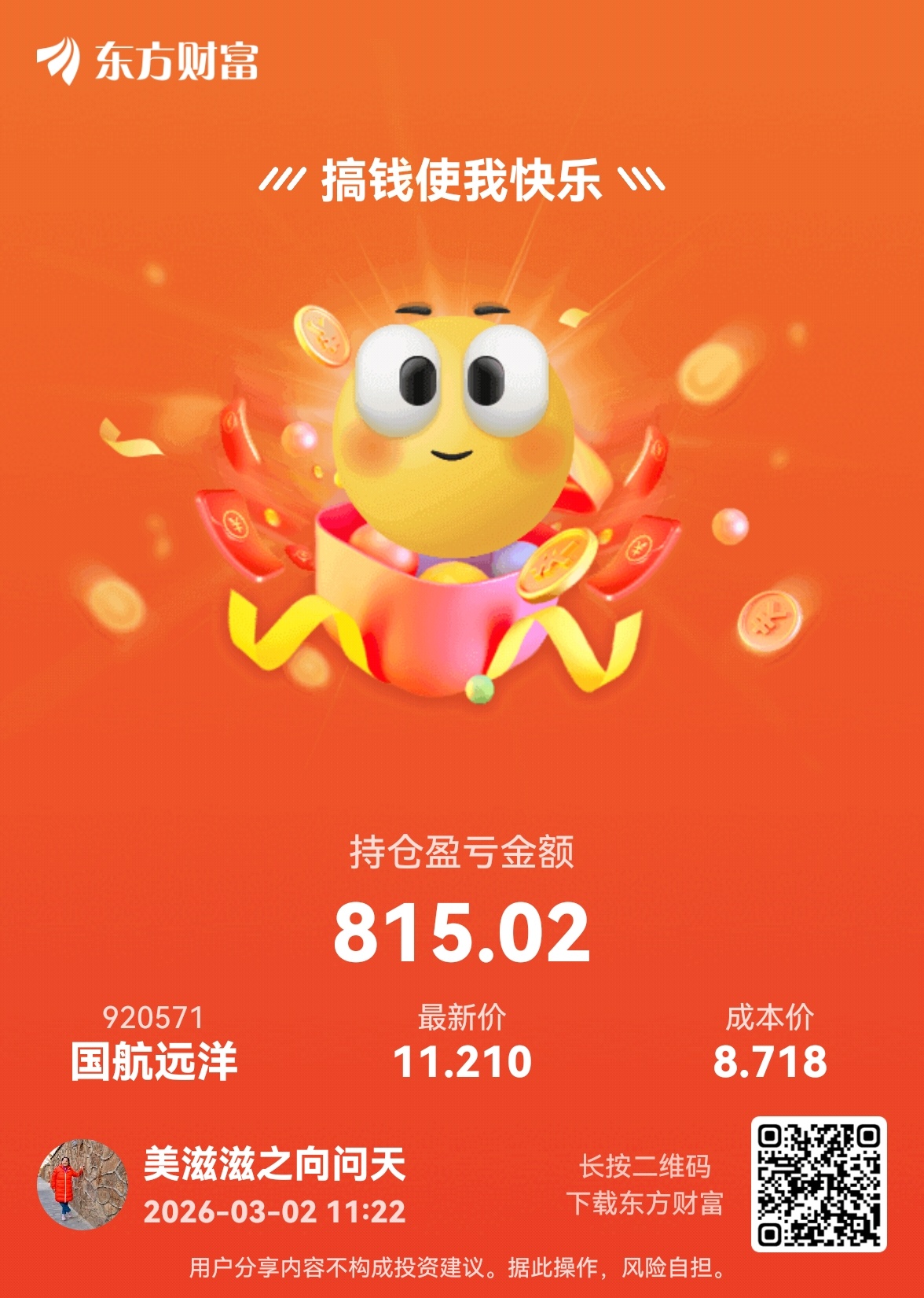 $国航远洋(SZ920571)$ 总算红了,拿了100多天了