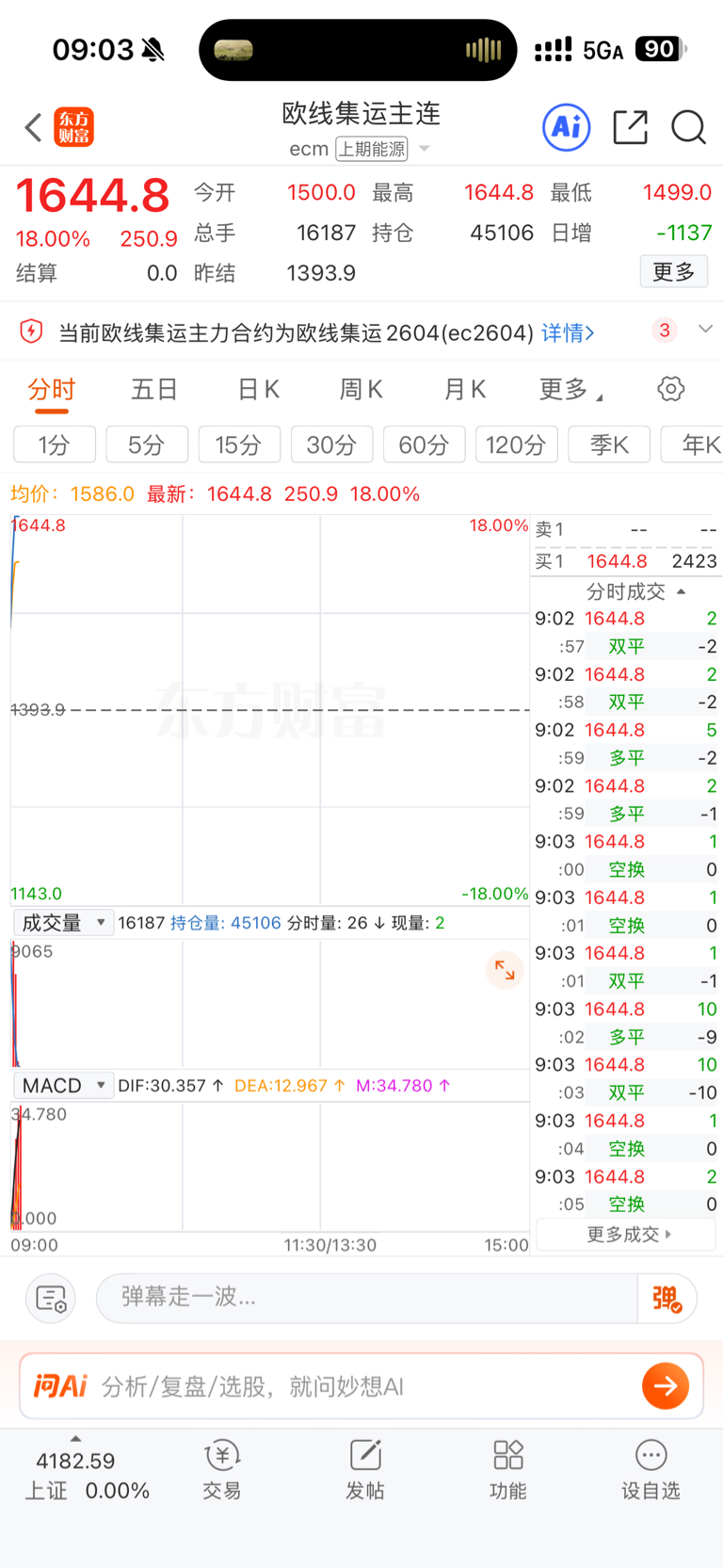 $国航远洋(SZ920571)$ 欧线已涨停,今天继续三十厘米