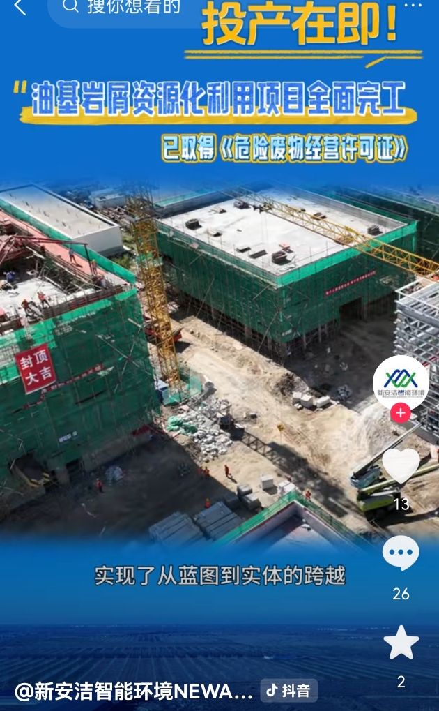 $新安洁(SZ920370)$ 新安洁:10万吨油基岩屑!位于新疆生产建设兵团第六师,紧邻吉木萨尔页岩油示范区。本项目为第六师唯一一个专业的油基岩屑资源化利用项目。