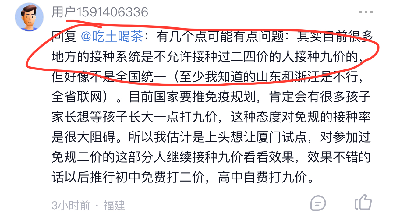 $康乐卫士(SZ920575)$ 告诉大家一个消息,如果之前有接种过低价次疫苗的人,不允许直接接种高价次,需要有低价次跟自己家产品的惯序实验才行。比如万2+万九,就需要有惯序实验。默4+万九也需要有。万2+康乐9自然也需要。(部分省市在执行这个。)