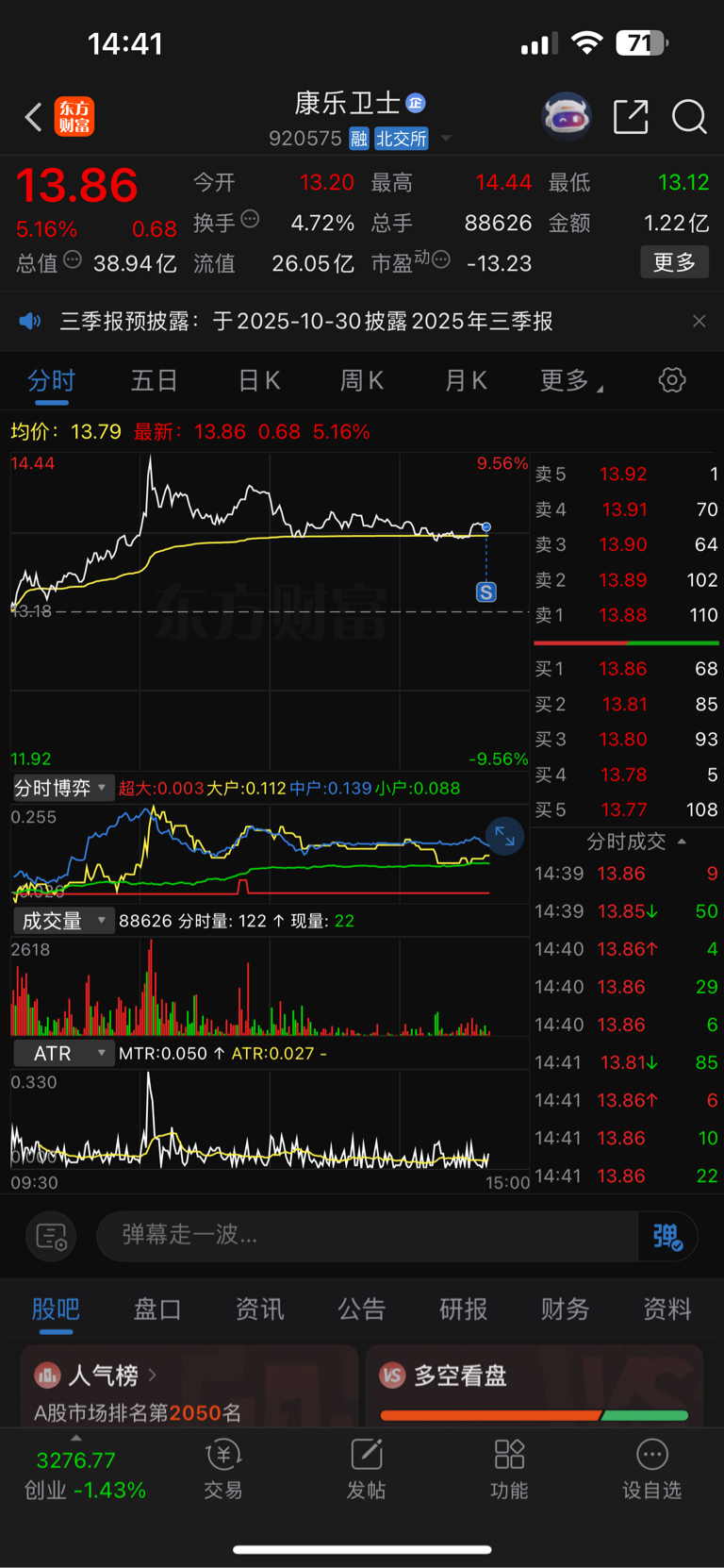 $康乐卫士(SZ920575)$ 清仓,坐等明天早上做T