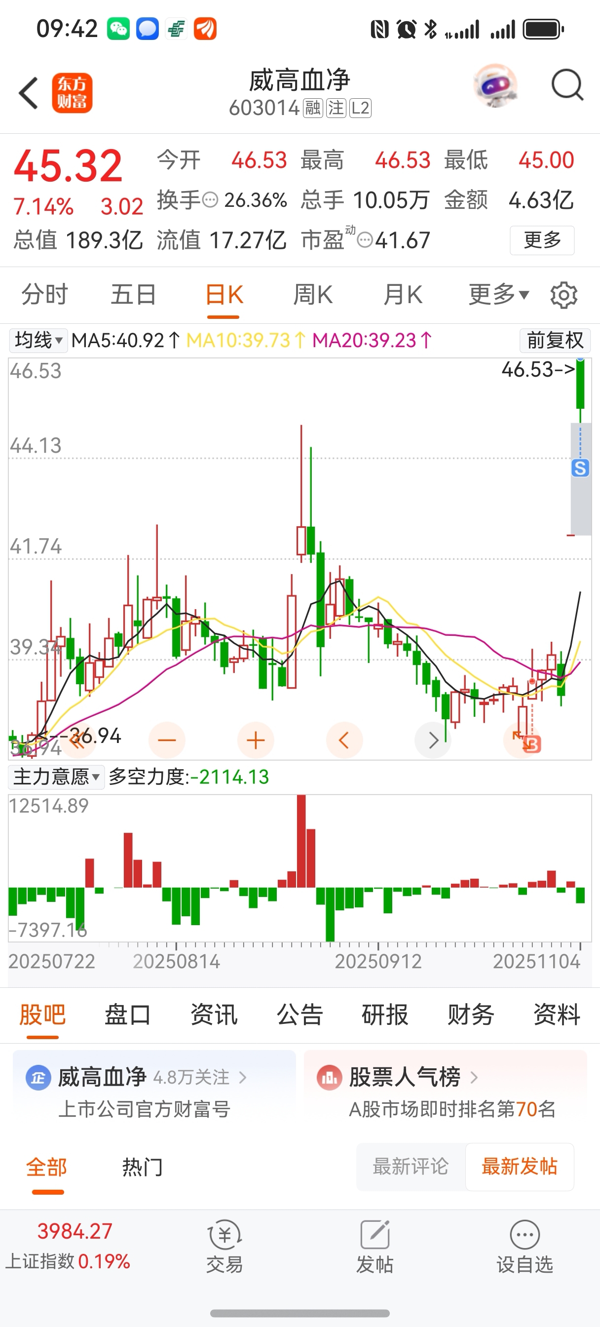 $康乐卫士(SZ920575)$ $威高血净(SH603014)$ 师傅在这里,你们继续努力!