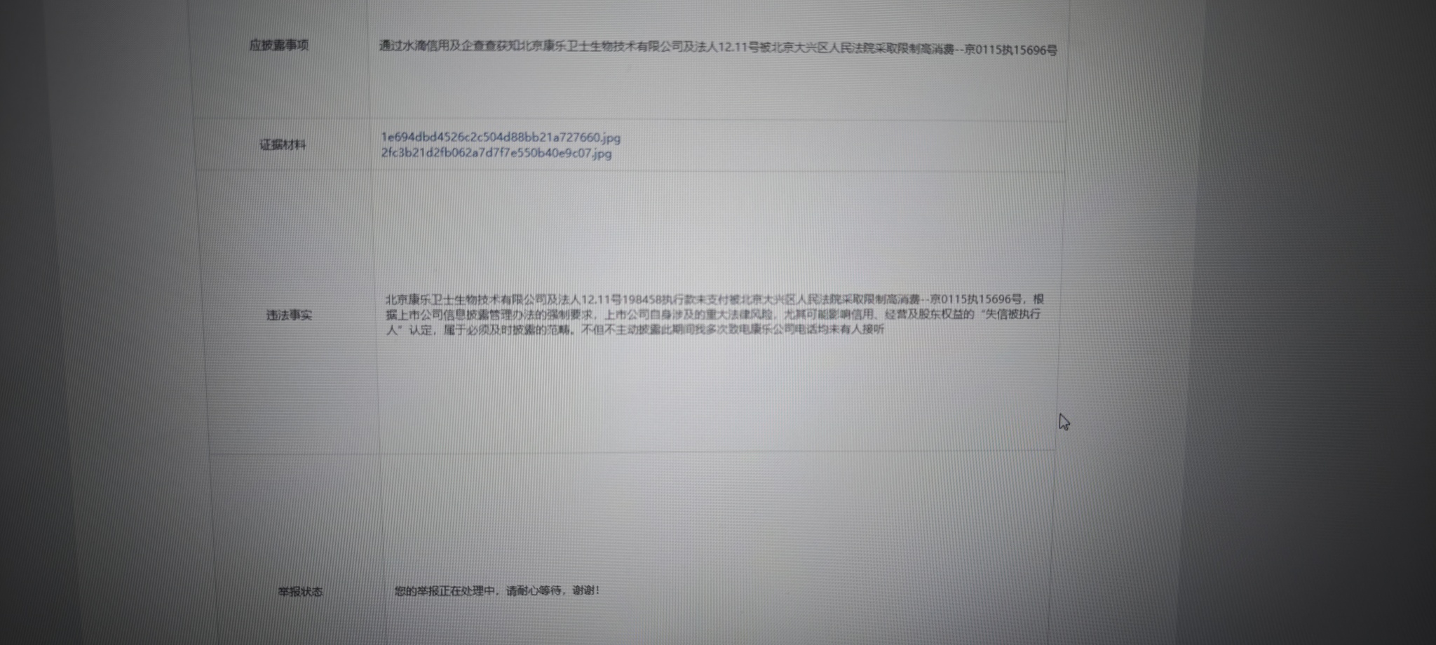 $康乐卫士(SZ920575)$ 已完成投诉举报,大家接龙,人多力量大