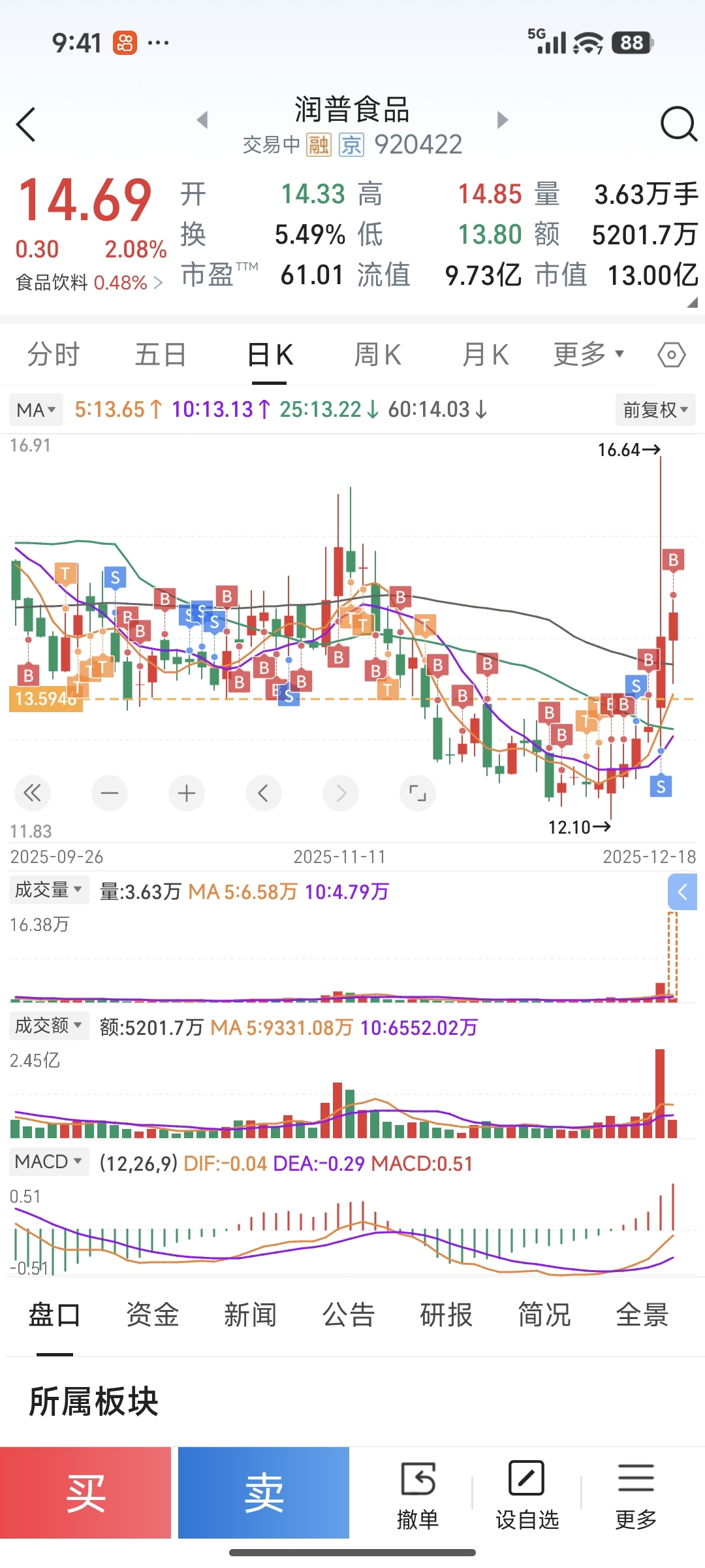 兄弟们我在另外一只股票一波抄底+做T这几天赚大了,昨天冲高卖了,今天水下两个点吃
