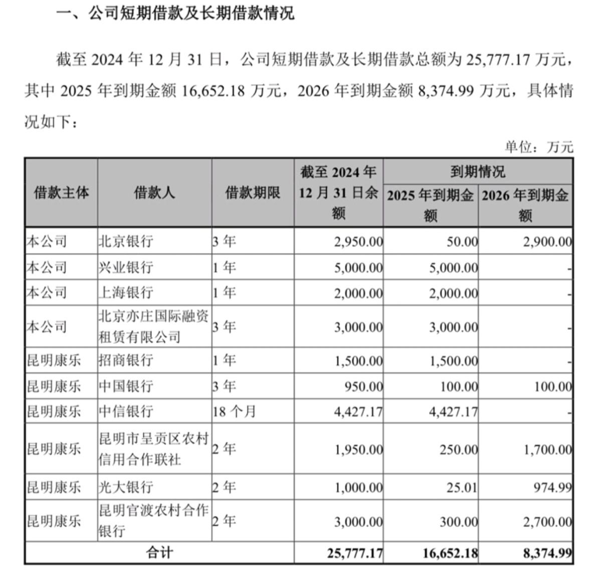 2025年到期1.6亿