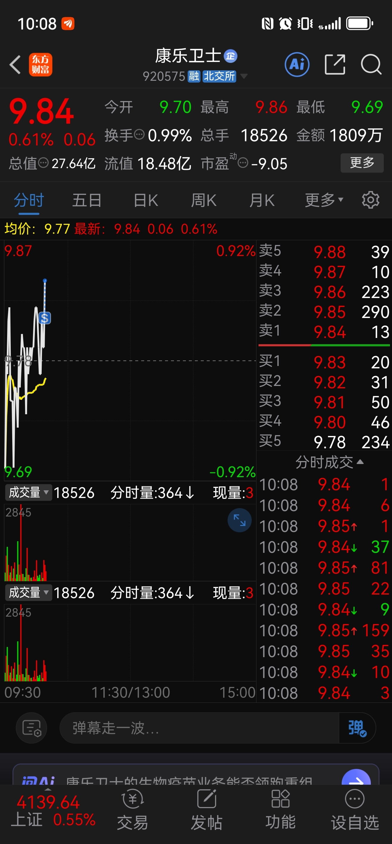 $康乐卫士(SZ920575)$ 盈利十个点卖出了。有机会再进