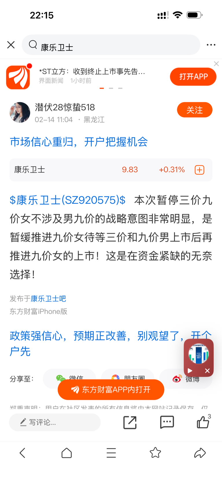 温馨提示: 1.根据《证券法》规定,禁止编造、传播虚假信息或者误导性信息,扰乱证券市场;2.用户在本社区发表的所有资料、言论等仅代表个人观点,与本网站立场无关,不对您构成任何投资建议。用户应基于自己的独立判断,自行决定证券投资并承担相应风险。《东方财富社区管理规定》