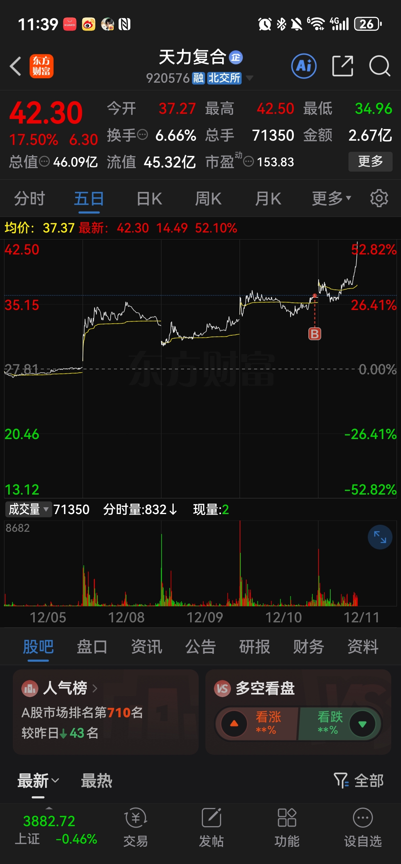 $天力复合(SZ920576)$ 昨天尾盘集合竞价买了点,还行