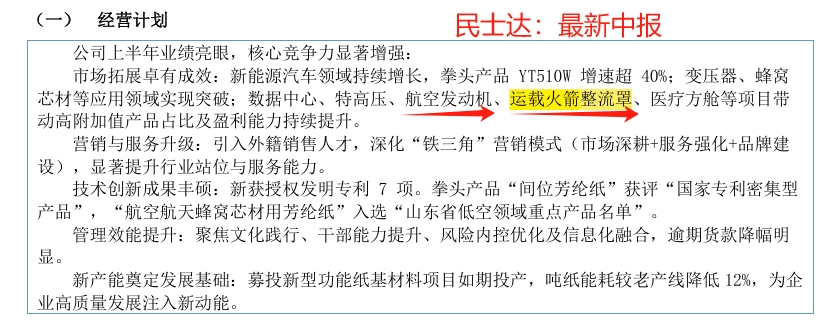 在央视节目中,长征系列火箭采用芳纶纸蜂窝整流罩,最为运载火箭的创新新材料应用!民士达中报实锤开拓运载火箭芳纶纸蜂窝整流罩和航空发动机