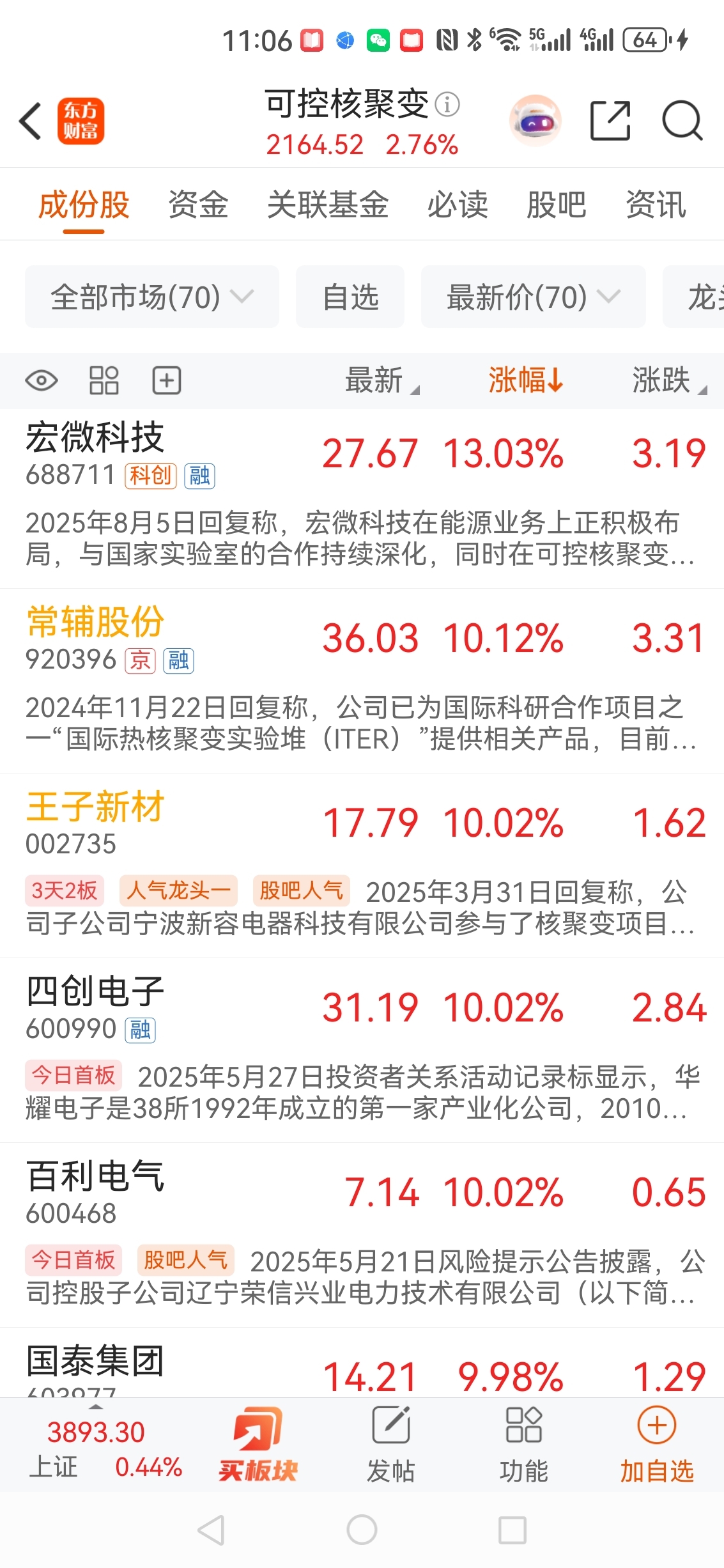 $天力复合(SZ920576)$ 天力复合你他麻的不仅仅是商业航天,更是北交所核聚变龙头股!看,今天核聚变掀起涨停潮,见下图,怕个锤子,加仓5000股。