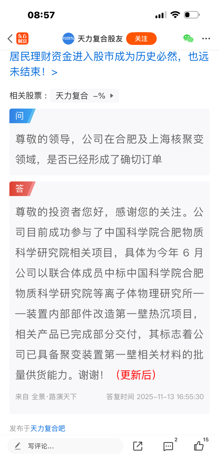 温馨提示: 1.根据《证券法》规定,禁止编造、传播虚假信息或者误导性信息,扰乱证券市场;2.用户在本社区发表的所有资料、言论等仅代表个人观点,与本网站立场无关,不对您构成任何投资建议。用户应基于自己的独立判断,自行决定证券投资并承担相应风险。《东方财富社区管理规定》