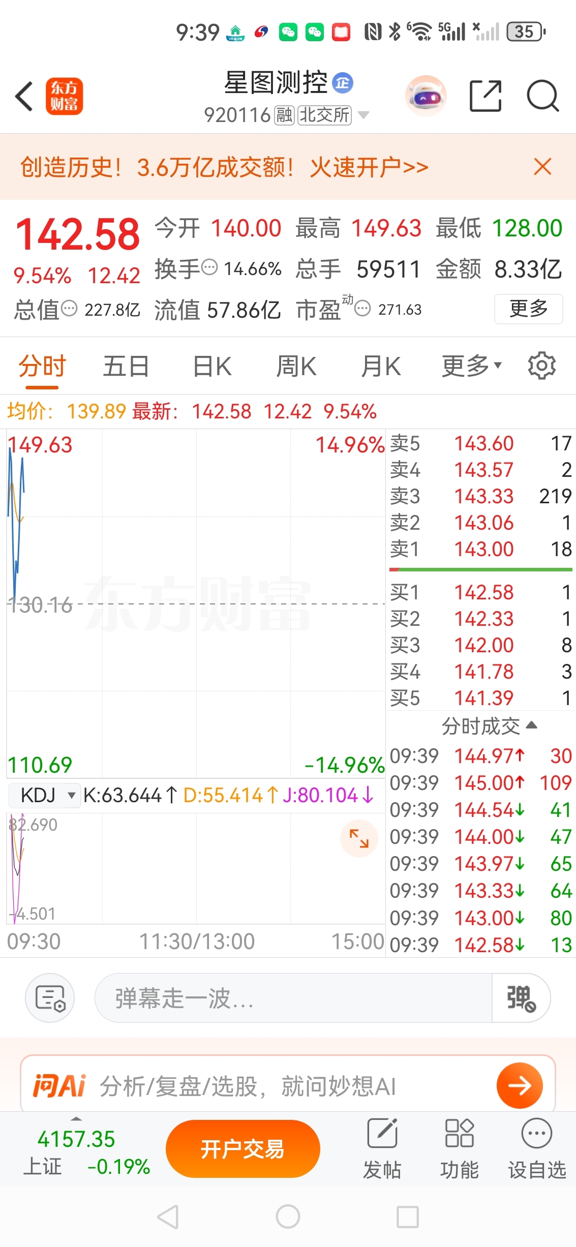 北交所商业航天星图测控大涨10个点
