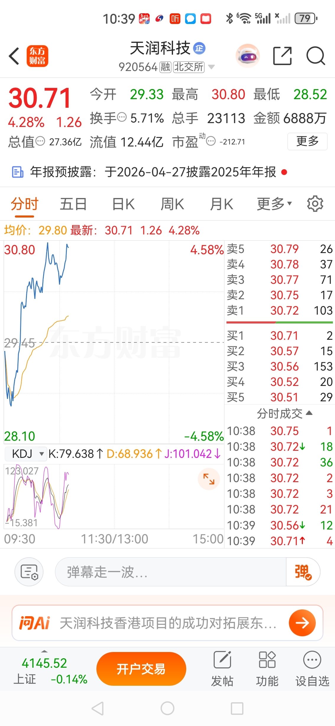 北交所商业航天4剑客,天力今天涨得最少,补涨潜力巨大,管住手不要卖,否则下午收盘