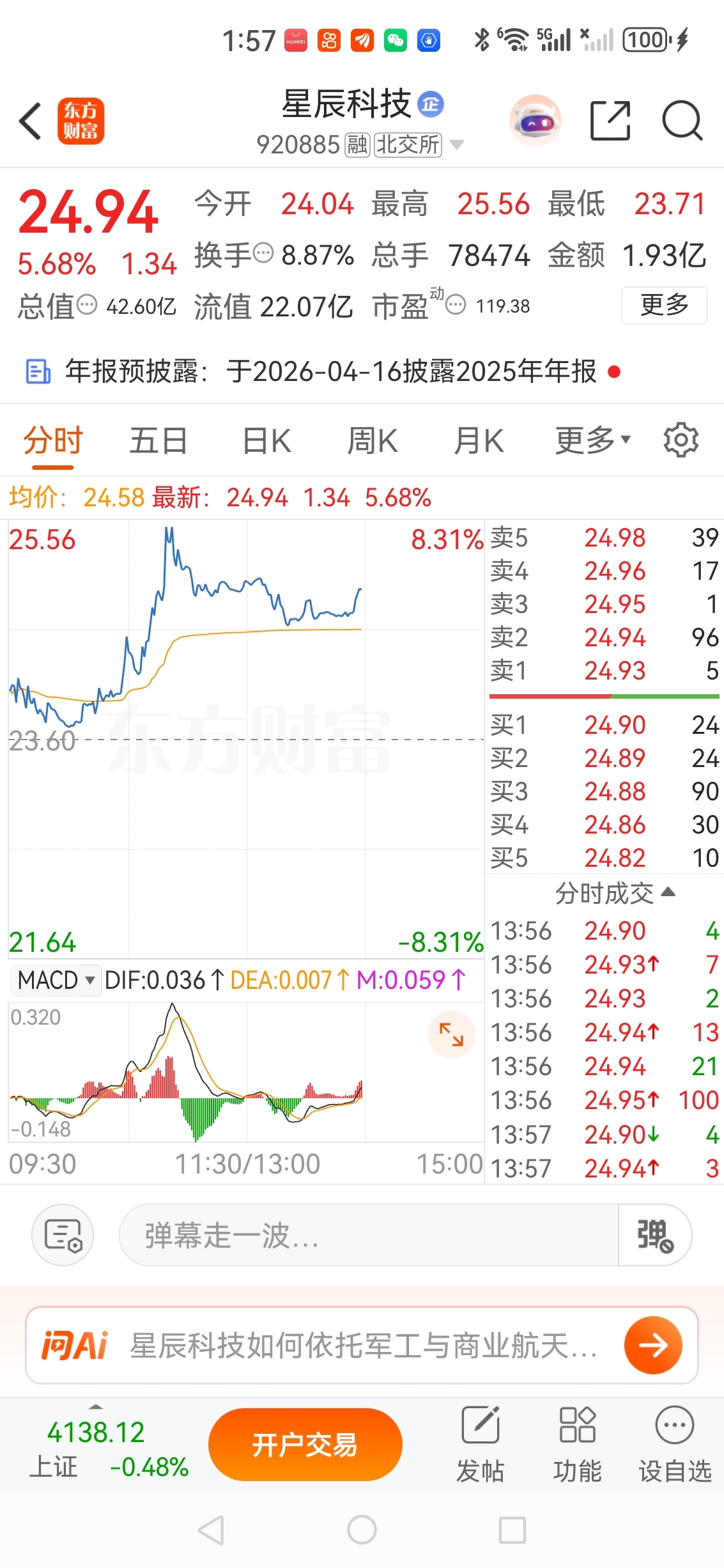 你连北交所商业航天的小弟星辰科技都涨不过啦!但我还是看好你最靓的仔,加仓2000