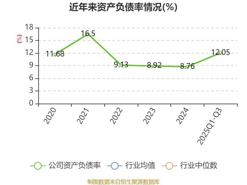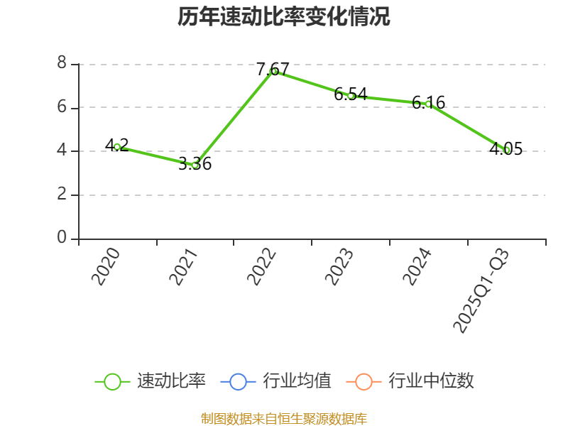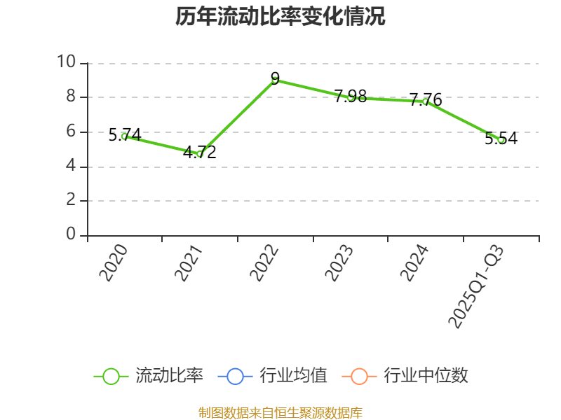 2025年前三季度,公司流动比率为5.54,速动比率为4.05。