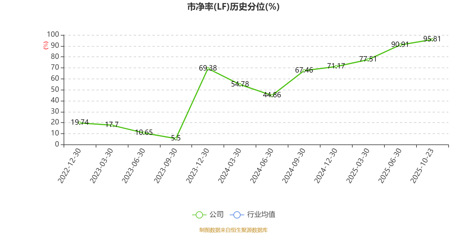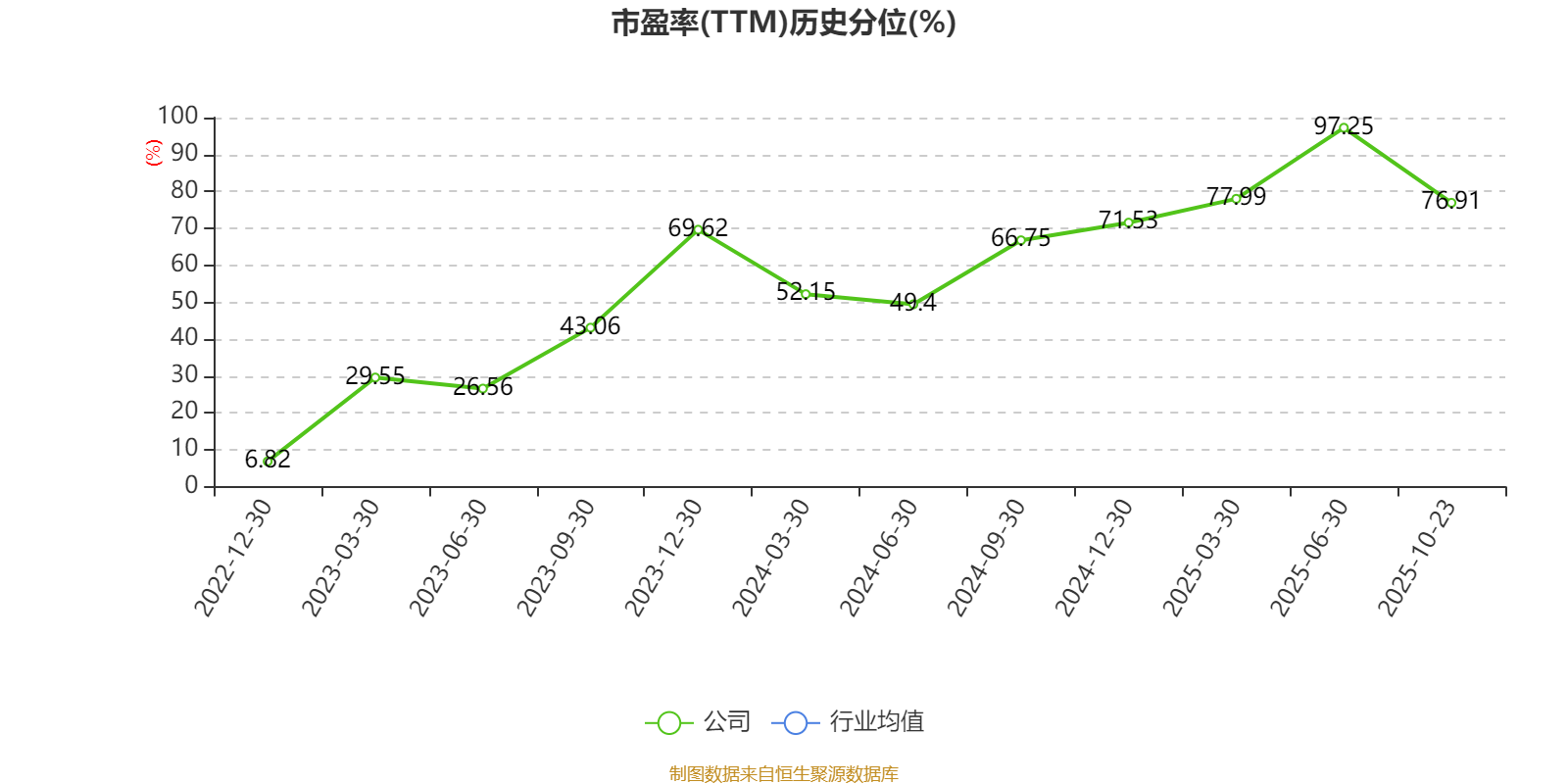 市盈率、市净率为负时,不显示当期分位数,会导致折线图中断。
