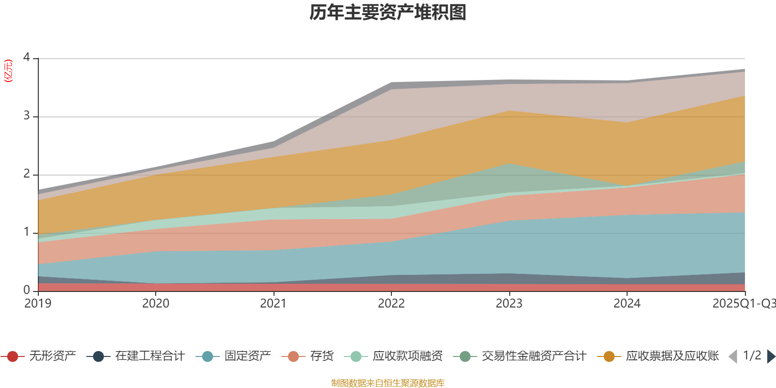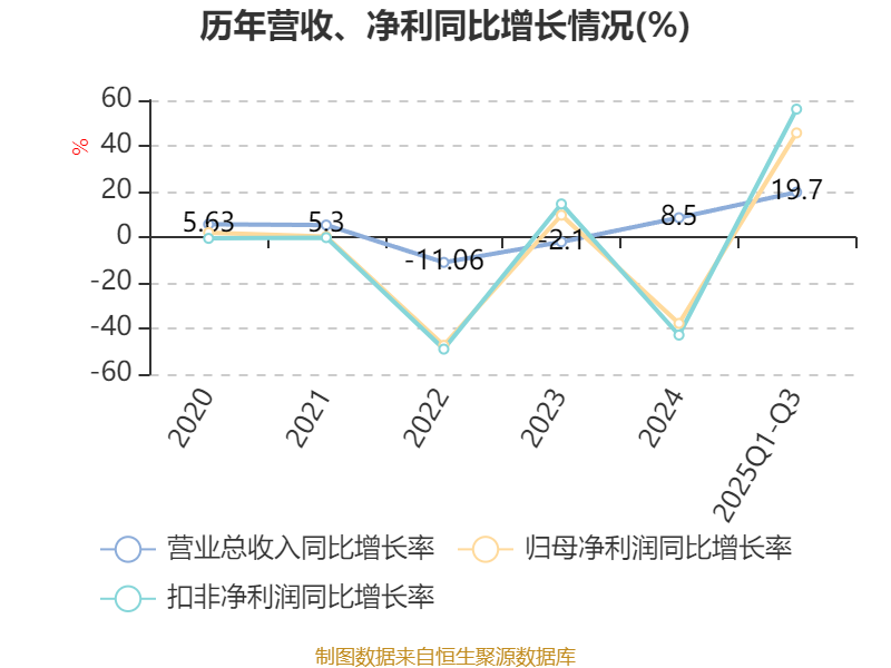 资产重大变化方面,截至2025年三季度末,公司货币资金较上年末减少39.47%,占公司总资产比重下降7.95个百分点;交易性金融资产合计占公司总资产的5.24%,上年末为0;存货较上年末增加39.69%,占公司总资产比重上升4.21个百分点;固定资产较上年末减少5.12%,占公司总资产比重下降3个百分点。