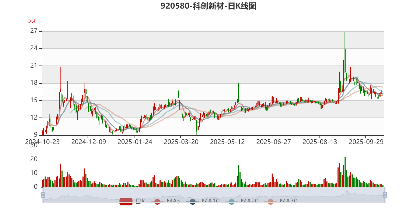 以10月23日收盘价计算,科创新材目前市盈率(TTM)约为106.65倍,市净率(LF)约4.15倍,市销率(TTM)约10.74倍。