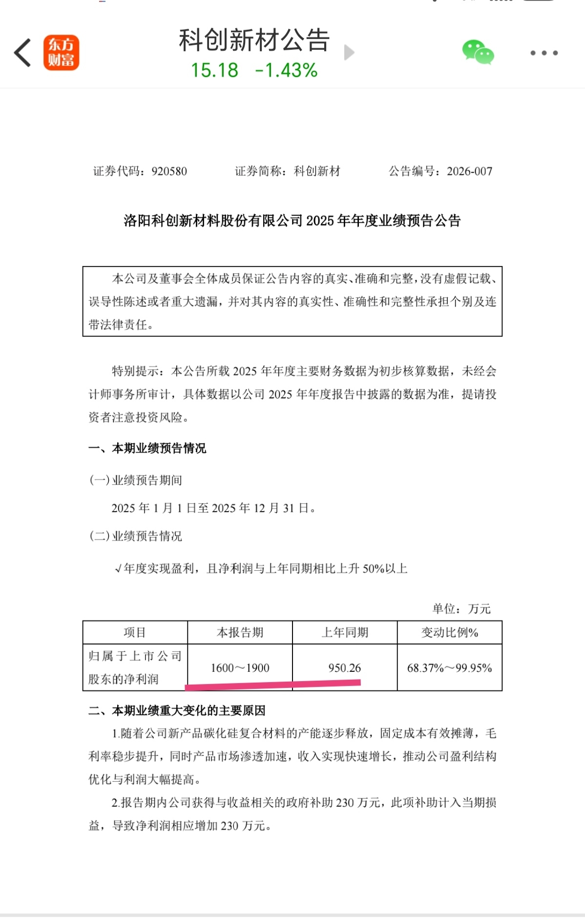超级大利好,年报预告业绩暴增,四季度一个季度净利润近800万,之前投产的项目开始发力,一个季度接近前面三个季度总和,这是超级大利好。