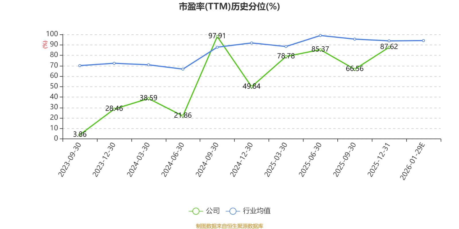 市盈率、市净率为负时,不显示当期分位数,会导致折线图中断。