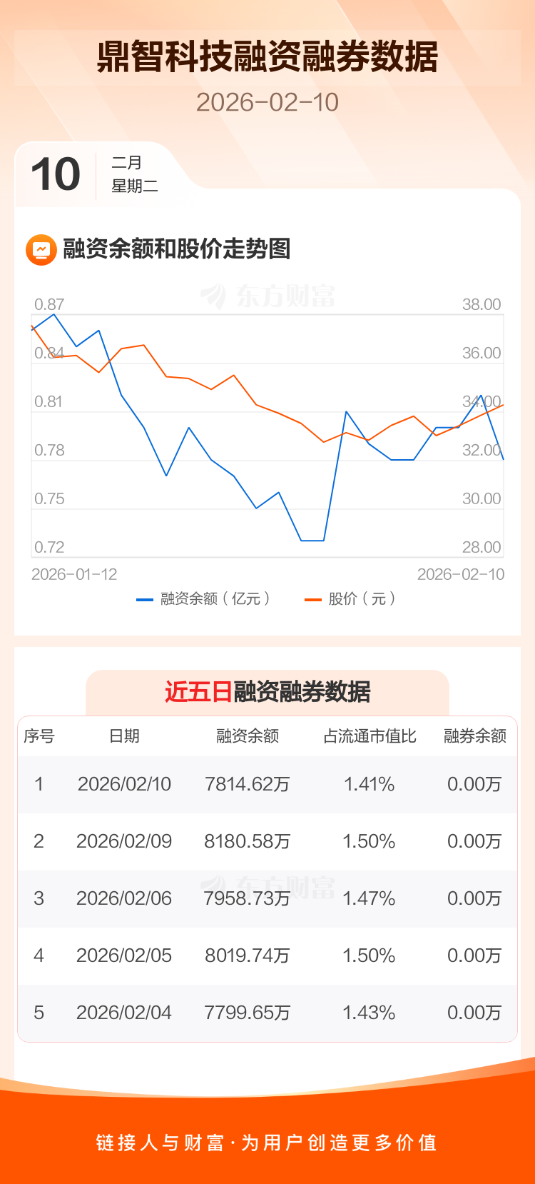 鼎智科技:融资净偿还365.96万元,融资余额7814.62万元