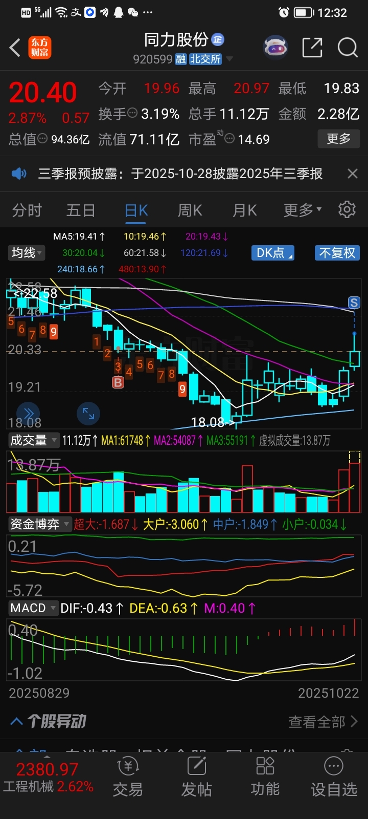 $同力股份(SZ920599)$ 解套了,感谢主力!跌下去再买。
