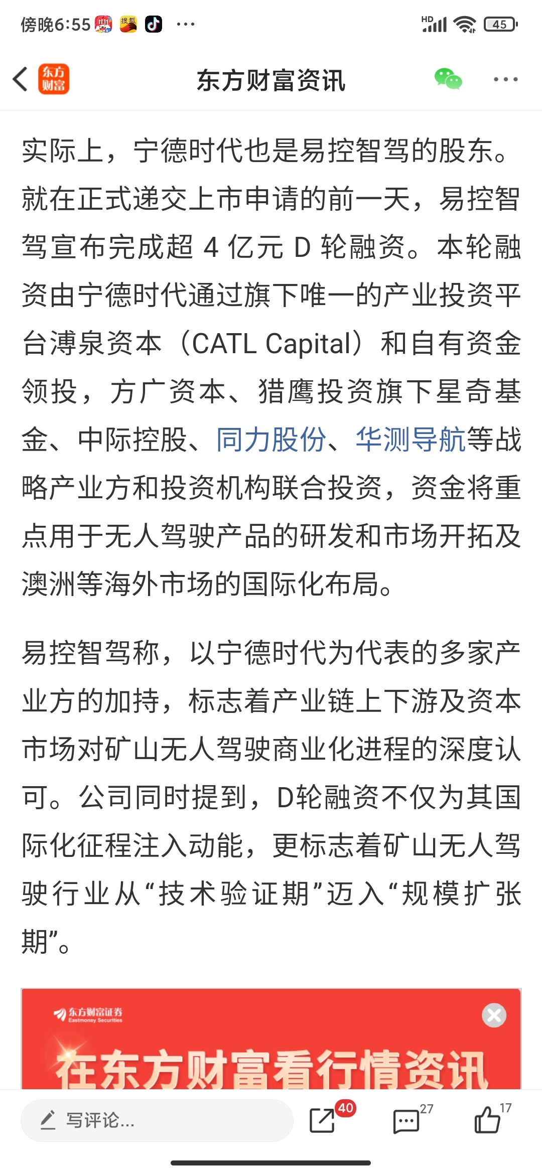 温馨提示: 1.根据《证券法》规定,禁止编造、传播虚假信息或者误导性信息,扰乱证券市场;2.用户在本社区发表的所有资料、言论等仅代表个人观点,与本网站立场无关,不对您构成任何投资建议。用户应基于自己的独立判断,自行决定证券投资并承担相应风险。《东方财富社区管理规定》
