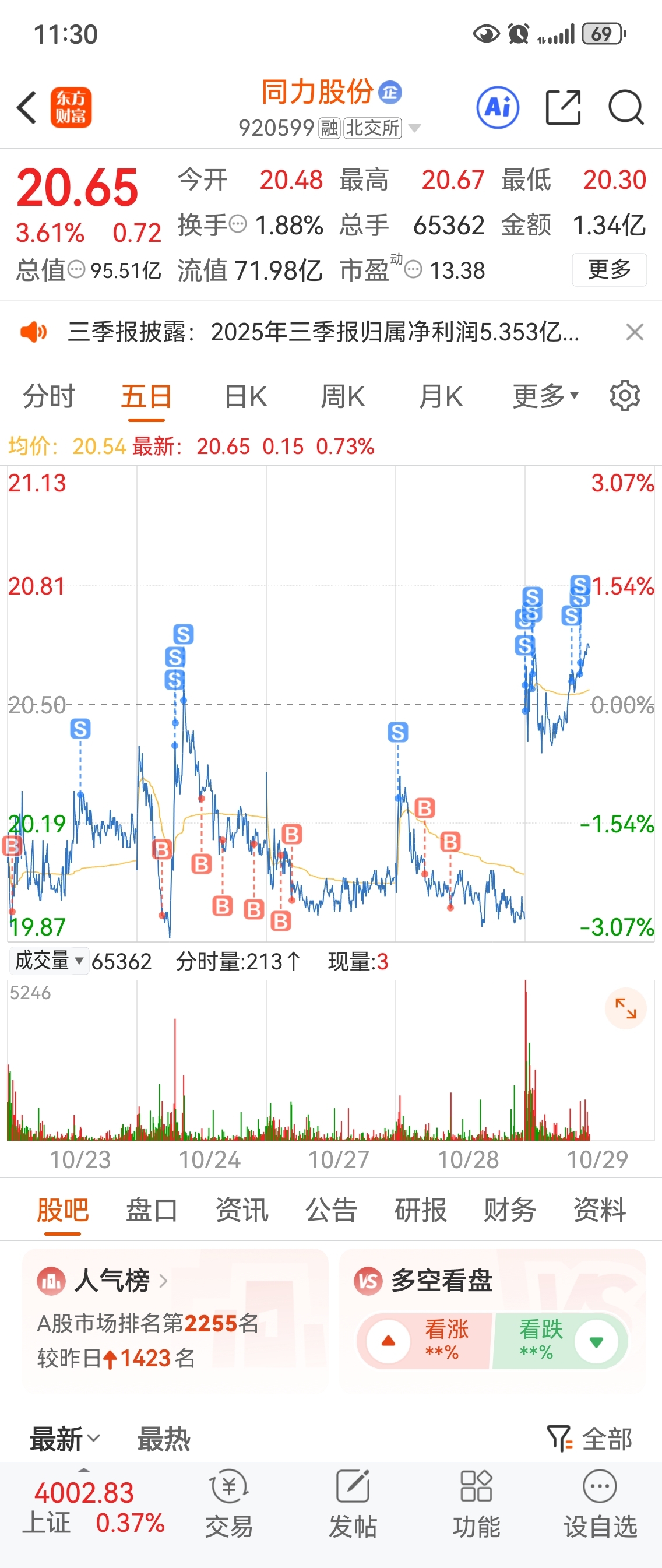 $同力股份(SZ920599)$ 继续等待!等有20+的大阳线才跑路,没有就边T边等!只有成本足底低才等得到大爆发,否则很容易被甩下车