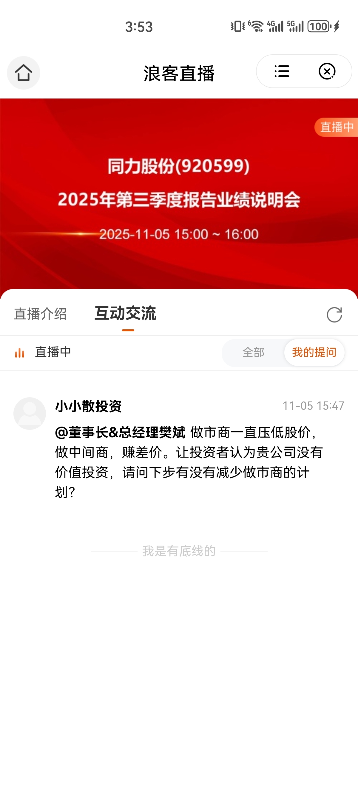 $同力股份(SZ920599)$ 樊斌会回应吗?