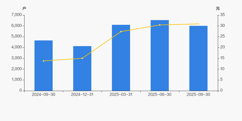 截至2025年9月30日,公司最新总股本为6391.2万股,其中流通股本为3999.74万股。户均持有流通股数量由上期的6115股上升至6657股,户均流通市值20.6万元。