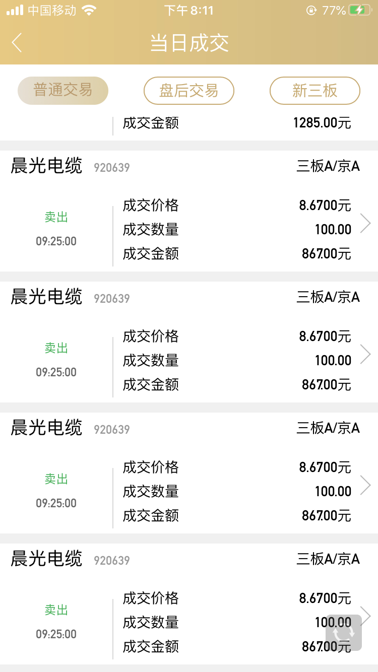 $晨光电缆(SZ920639)$ 全卖了,不要了!