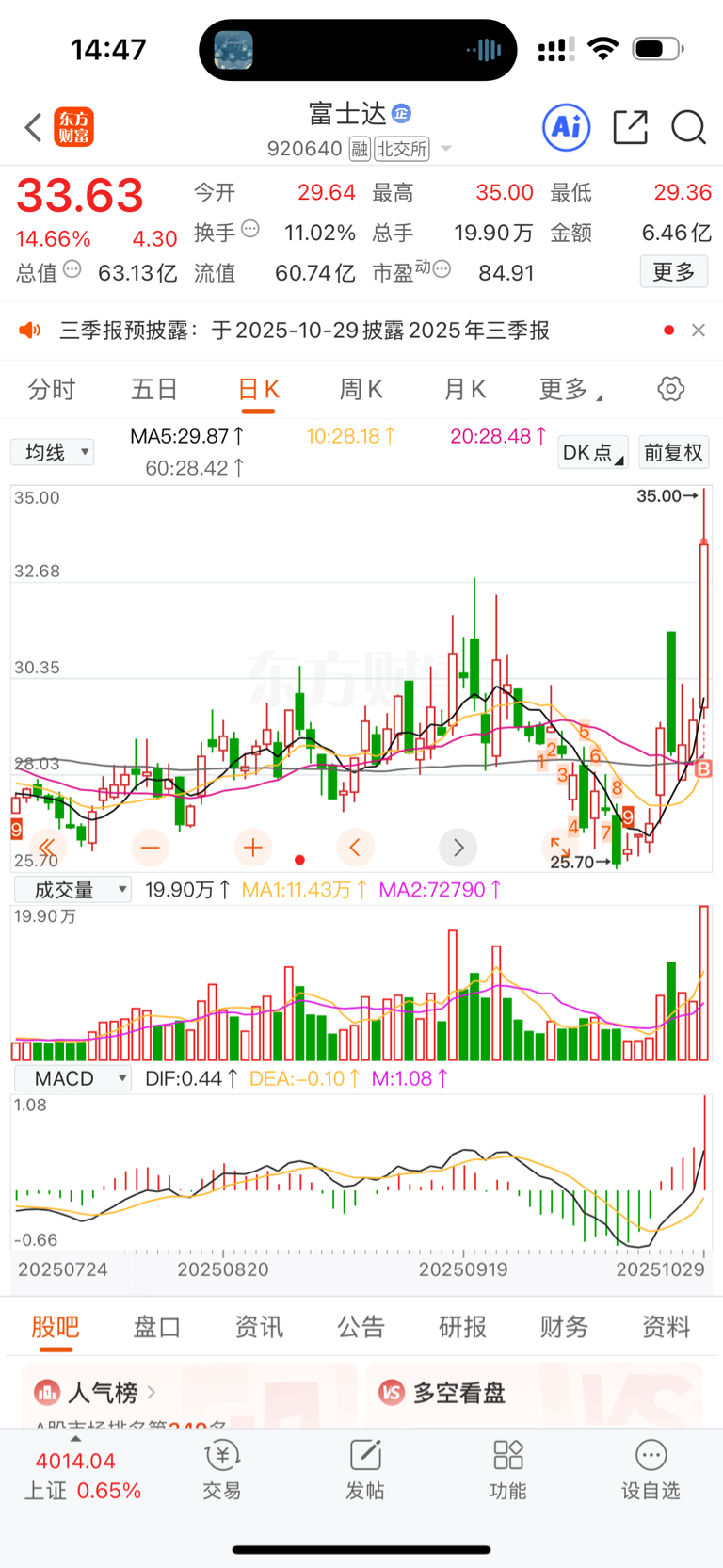 $富士达(SZ920640)$ 北证50涨了这么多,不管了选个靠前排的先上车再说