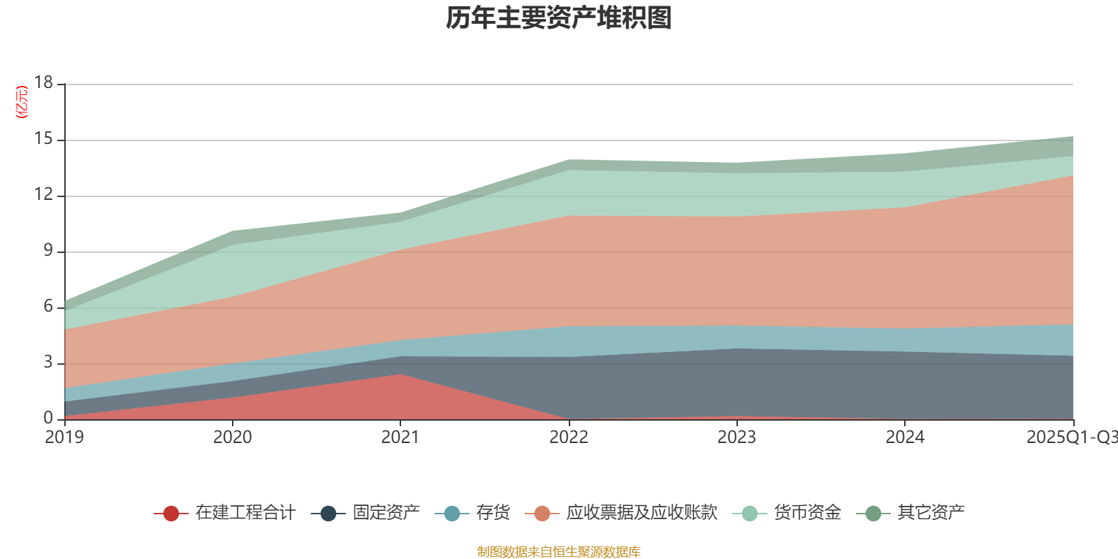 资产重大变化方面,截至2025年三季度末,公司应收票据及应收账款较上年末增加22.74%,占公司总资产比重上升6.98个百分点;货币资金较上年末减少46.06%,占公司总资产比重下降6.63个百分点;固定资产较上年末减少6.27%,占公司总资产比重下降3.02个百分点;存货较上年末增加37.03%,占公司总资产比重上升2.49个百分点。