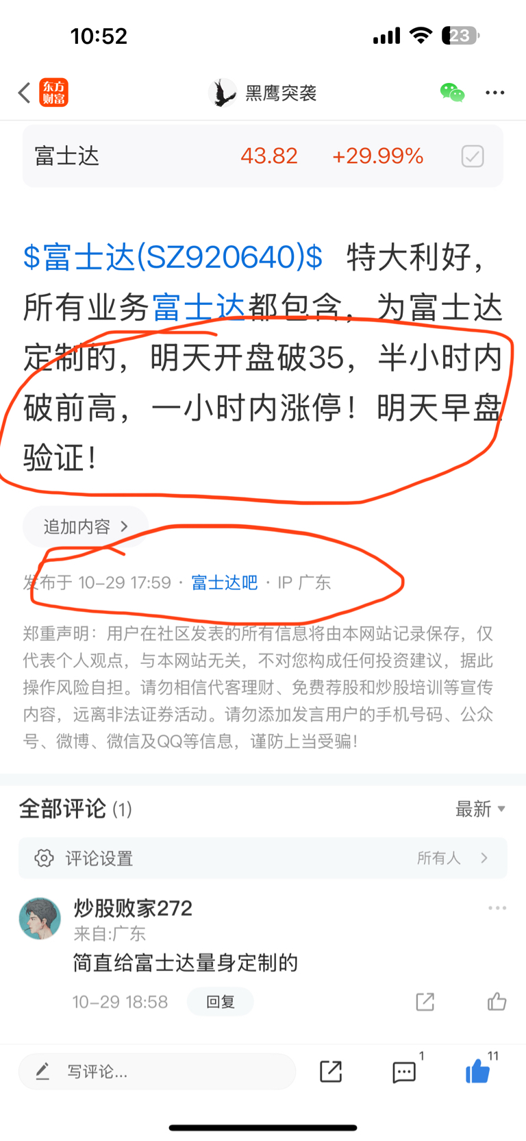 温馨提示: 1.根据《证券法》规定,禁止编造、传播虚假信息或者误导性信息,扰乱证券市场;2.用户在本社区发表的所有资料、言论等仅代表个人观点,与本网站立场无关,不对您构成任何投资建议。用户应基于自己的独立判断,自行决定证券投资并承担相应风险。《东方财富社区管理规定》